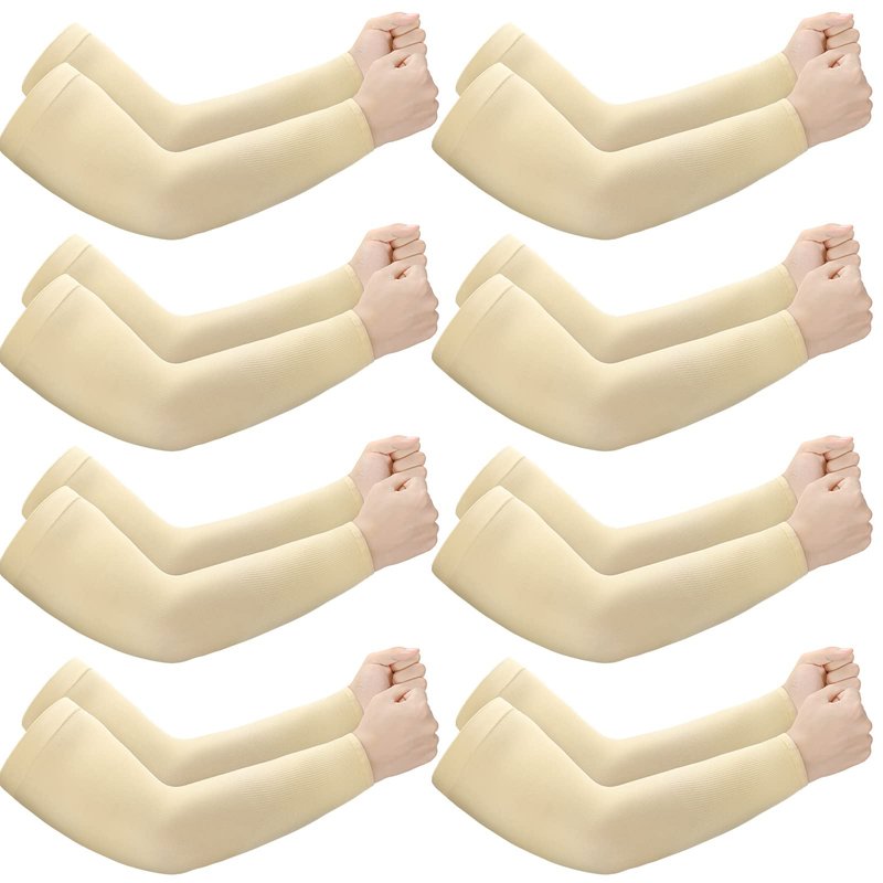 Janmercy Protective Arm Sleeves, 8 Pairs (Beige), Medium, for Thin Skin, Post-Operation Care, Bruise and Wound Prevention