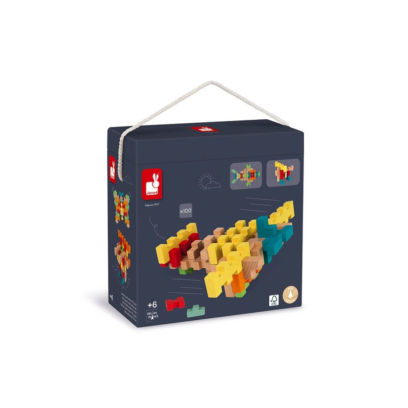 - SPARK THE IMAGINATION THROUGH PLAY - We place a strong focus on child development - physical, social, creative and imaginative play. Designed in the Jura region of France, since 1970 Janod has focused on bringing heirloom-quality toys to families around the world. Includes 100 blocks and 8 double-sided template cards.