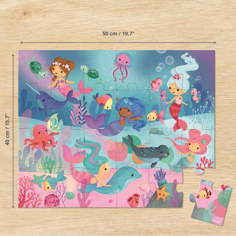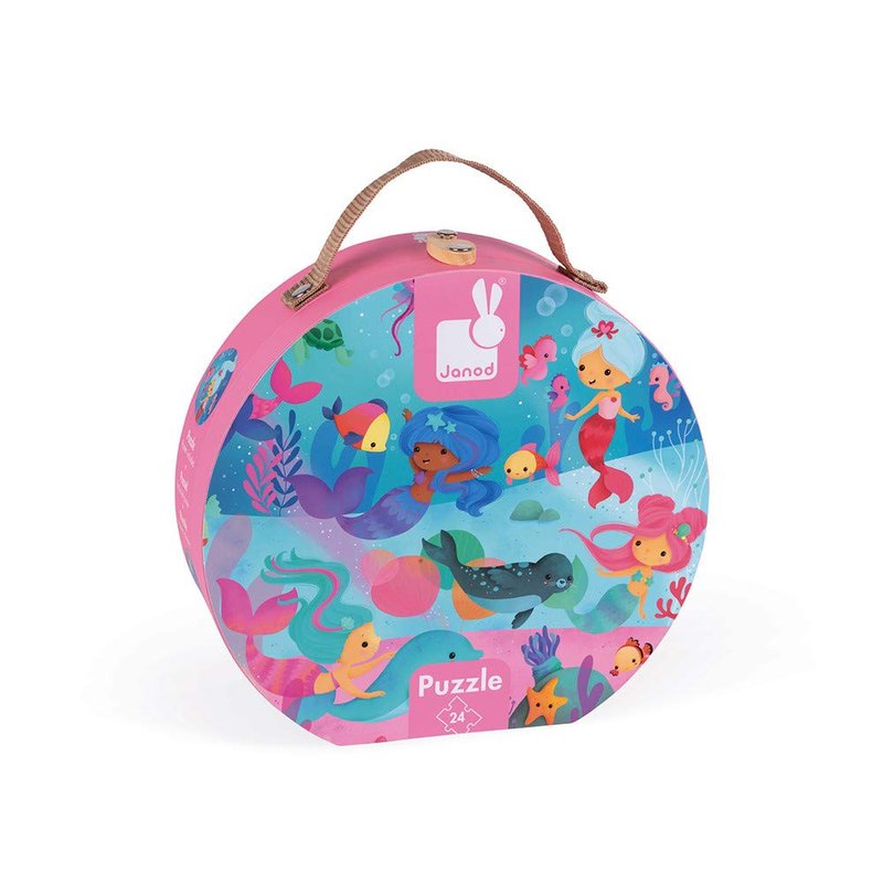 Janod 24 Piece Mermaid Floor Puzzle - Mini Suitcase Hat Box - Ages 3+ - J02683