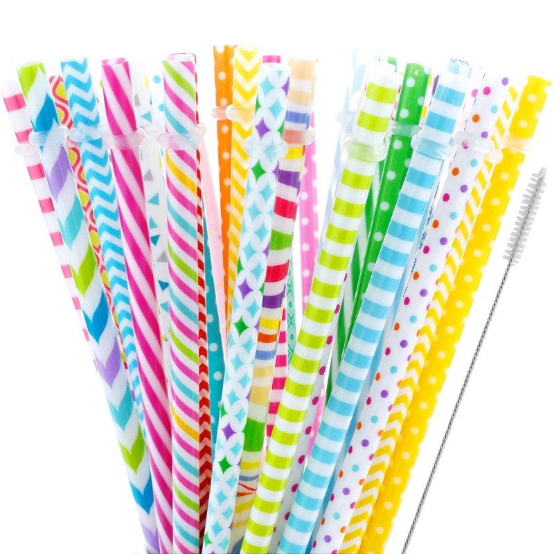 - PACKAGE INCLUDES - 40 assorted color and pattern straws,every straws have a rubber ring.in addition,cleaning brushes are included.
