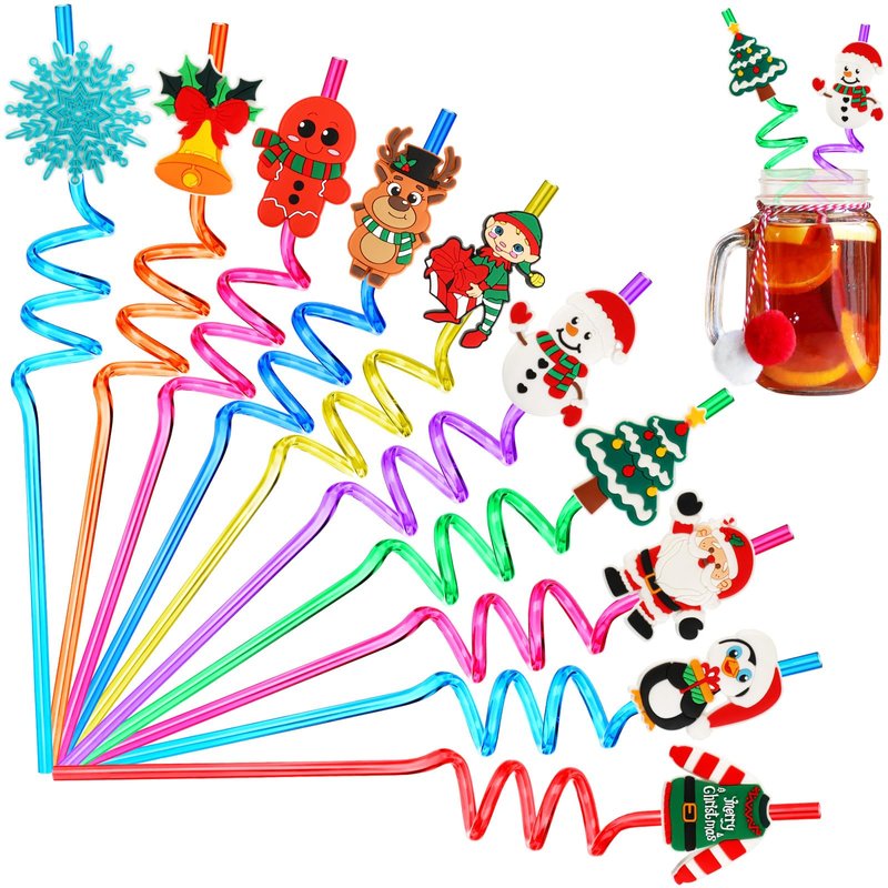 - 10 Classic Christmas Designs: Christmas plastic straws have 10 lovely classic Christmas elements, such as gingerbread man, ugly sweater, snowflake, Christmas tree, Santa Claus, reindeer, penguin, snowman, bell, Christmas elf, etc. These Christmas decorations on the Christmas straws are removable and you can mix and match according to your personal preference. Bright colors and cute styles make your Christmas party more fun and colorful