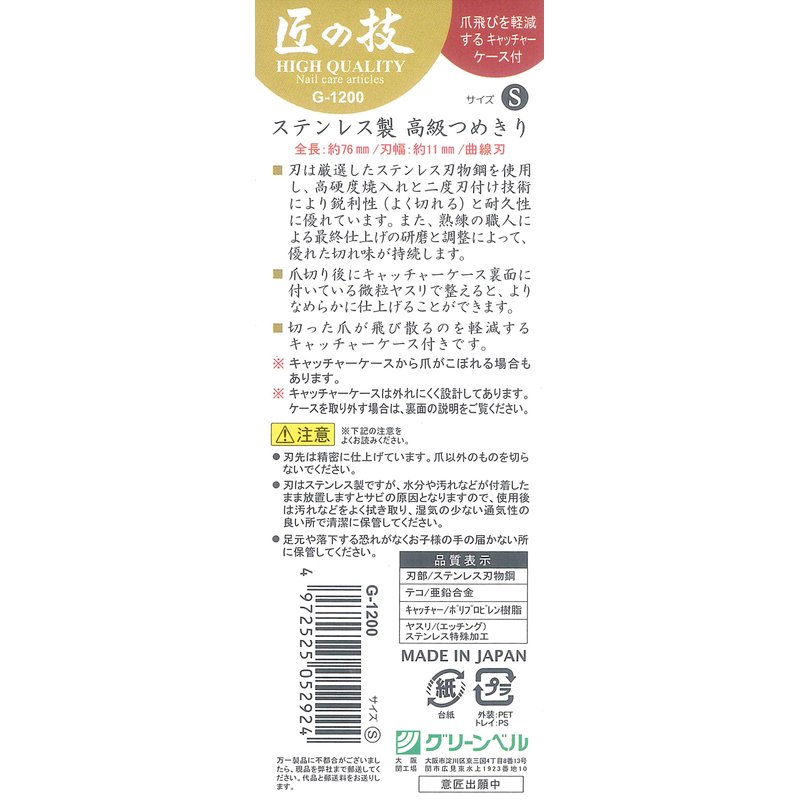 Japan Health and Beauty - S size G-1200 nail clippers made craftsmanship stainlessAF27