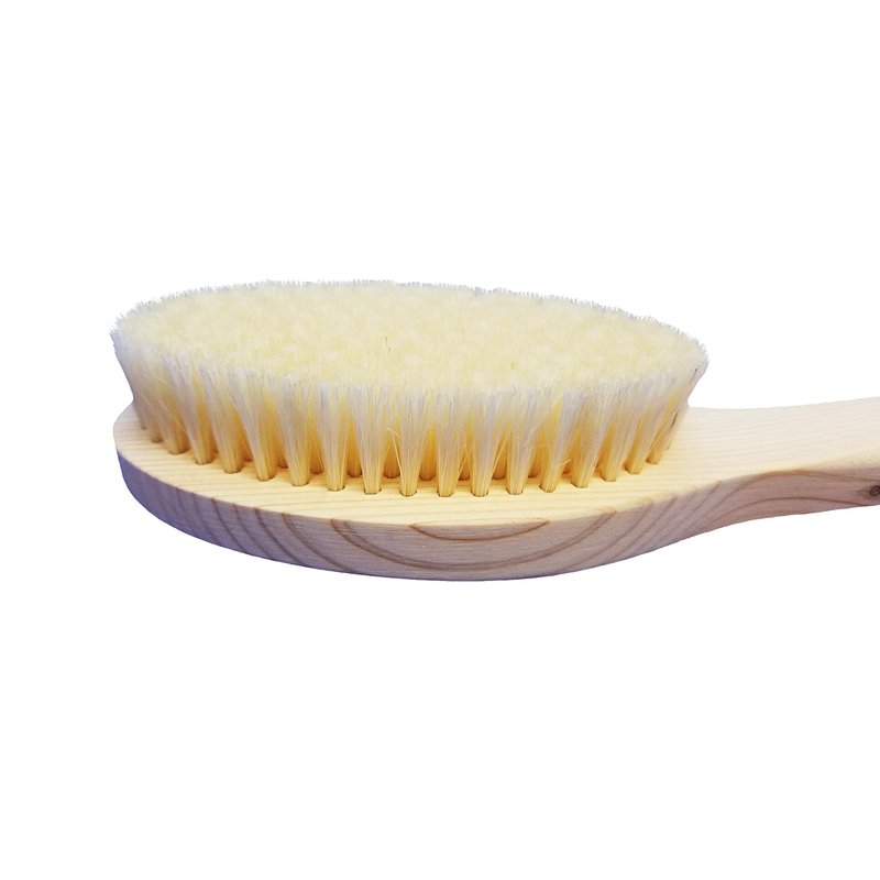 This all-natural body brush will help you have healthy, smooth, flawless, and beautiful skin. Naturally made with no environmentally harmful substances. The brush is crafted with a wooden handle and medium-soft pig hair bristles that are gentle to the skin. The brush helps exfoliate skin and remove dirt and dead skin. Suitable for bath use. A high-quality brush that is absolutely beautiful and eco-friendly. The handle is made from the most abundant type of wood at the time of production like buna (Japanese beech), hinoki, or cherry blossom tree. Care instructions: After use, rinse gently in lukewarm water and dry at room temperature. The brush has a rope loop for hanging. Please note, the color of the bristles and wood handle may vary as it's a natural product. Since 1914, made in Japan.