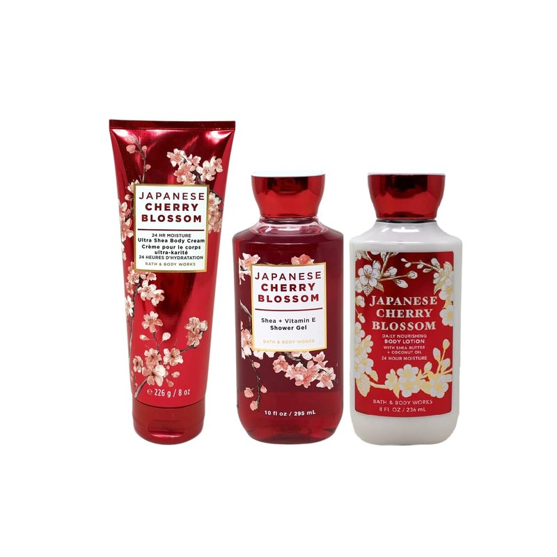 Japanese Cherry Blossom Gift Set - 3 Piece Bath and Body Works Gift Set - Japanese Cherry Blossom Lotion + Ultra Shea Triple Moisture Cream + Shower Gel