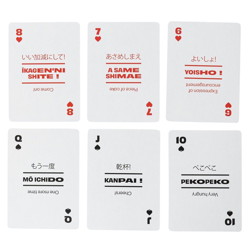- STANDARD PLAY DECK - Each deck of cards has 54 of the most useful phrases to know in Japan, complete with phonetic pronunciations, and features a conventional deck of 52 playing cards and two jokers. These flash cards provide an introduction to common Japanese (nihongo) lingo and are ideal for language learners just starting out.