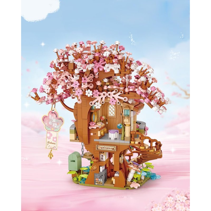 Japanese Sakura Tree House Building Blocks Set, Pink Cherry Tree Bonsai Creative Architecture, Home Decor or Idea Gifts for Adults and Kids, Mini Particles 1149 PCS (1381)