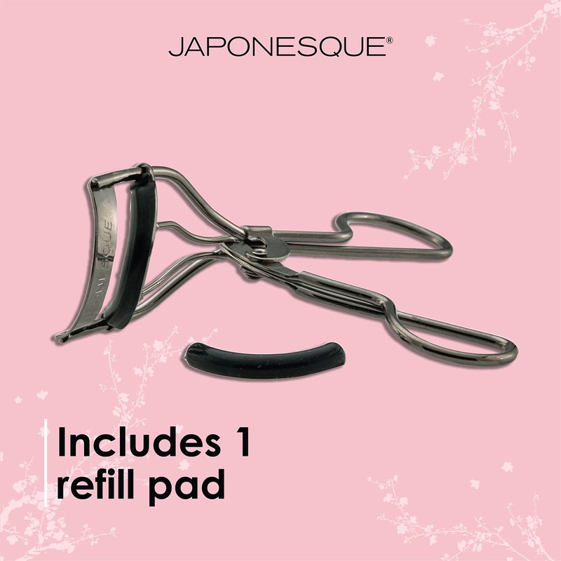 JAPONESQUE Extreme Lash Curler - Scissor Comfort Handle, Deep Curl, Keeps Lashes Curled for 8 Hours, High Arch Design, for Natural or False Lashes, Includes 1 Refill Pad (Gunmetal)