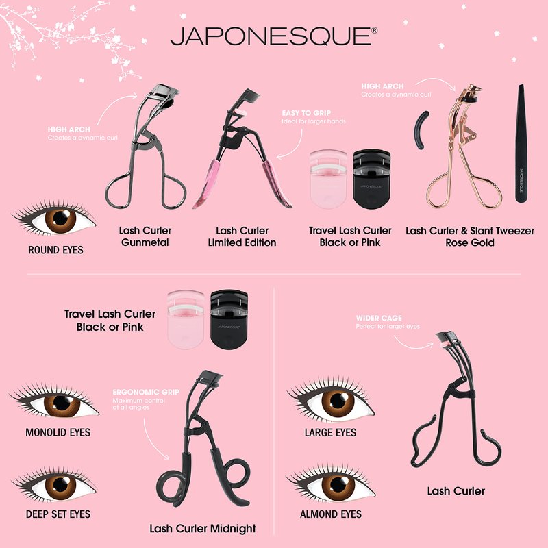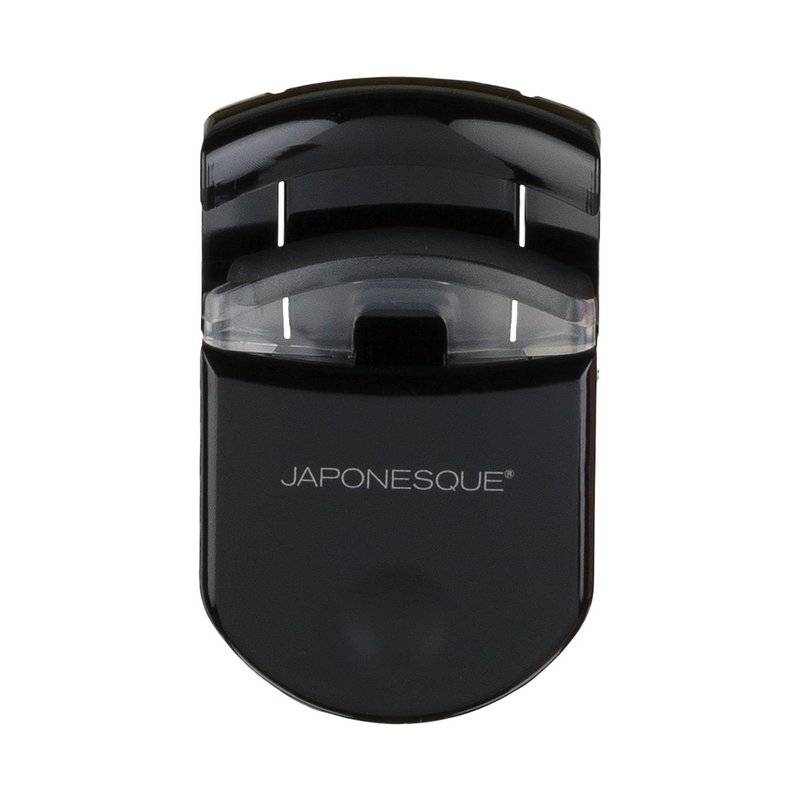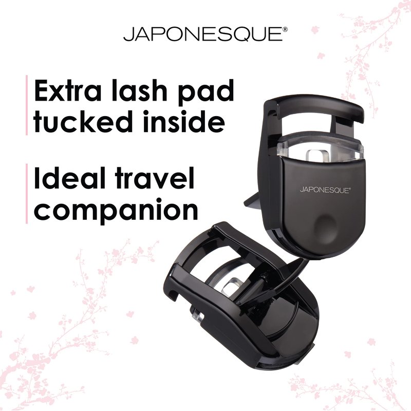 JAPONESQUE Travel Eyelash Curler, Black - Plastic Eyelash Curlers for Travel Makeup - Comes with Bonus Replacement Lash Pad - 1 Pack