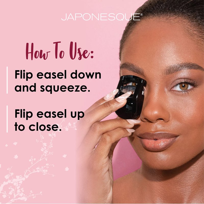 - CONVENIENT LASH TOOL - The travel lash curler holds a bonus replacement lash pad conveniently tucked inside. To use, flip the easel down and squeeze, then flip up to close. Use before mascara application. Plastic materiel is easy to clean!