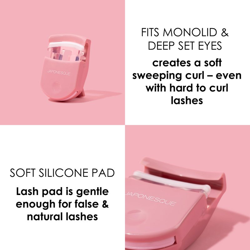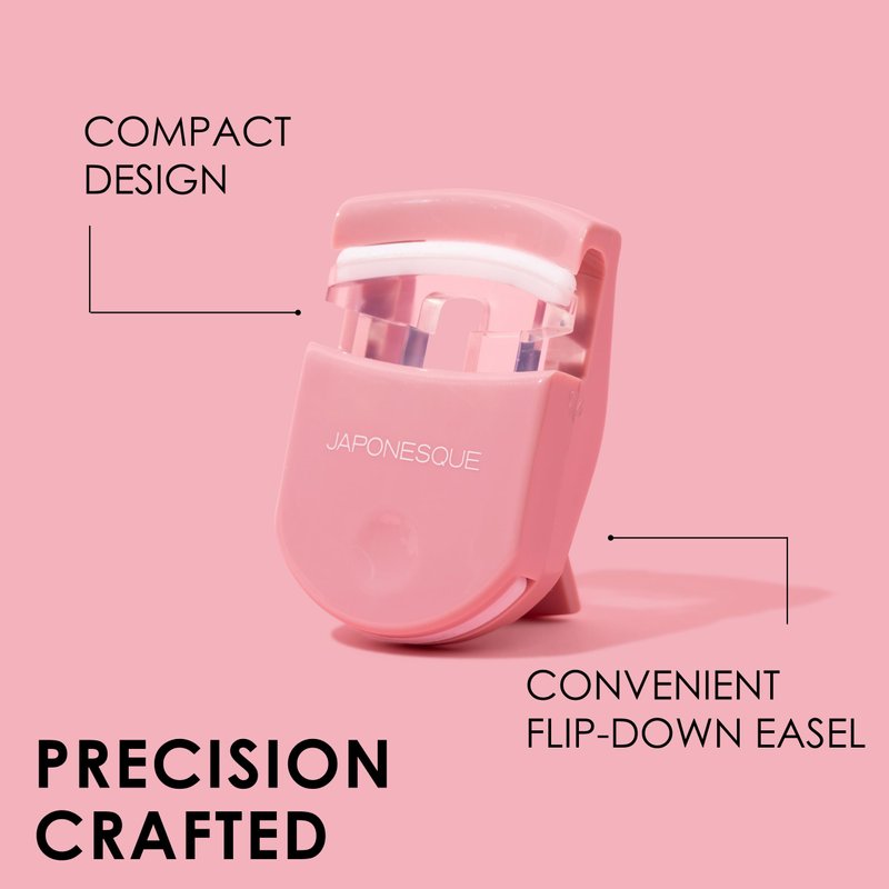 JAPONESQUE Travel Eyelash Curler, Pink - Plastic Eyelash Curlers for Travel Makeup, Go Curl Lash Curler with Bonus Replacement Lash Pad - 1 Pack