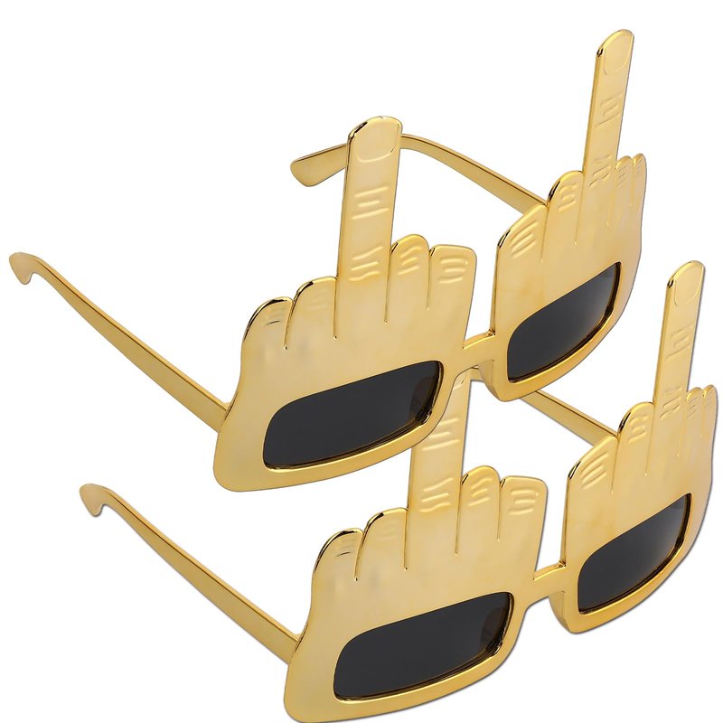 jarbins 2 Pairs Golden Middle Finger Sunglasses Novelty Finger Glasses Funny Eyewear for Halloween Masquerade Cosplay Props for Adults Party Favors