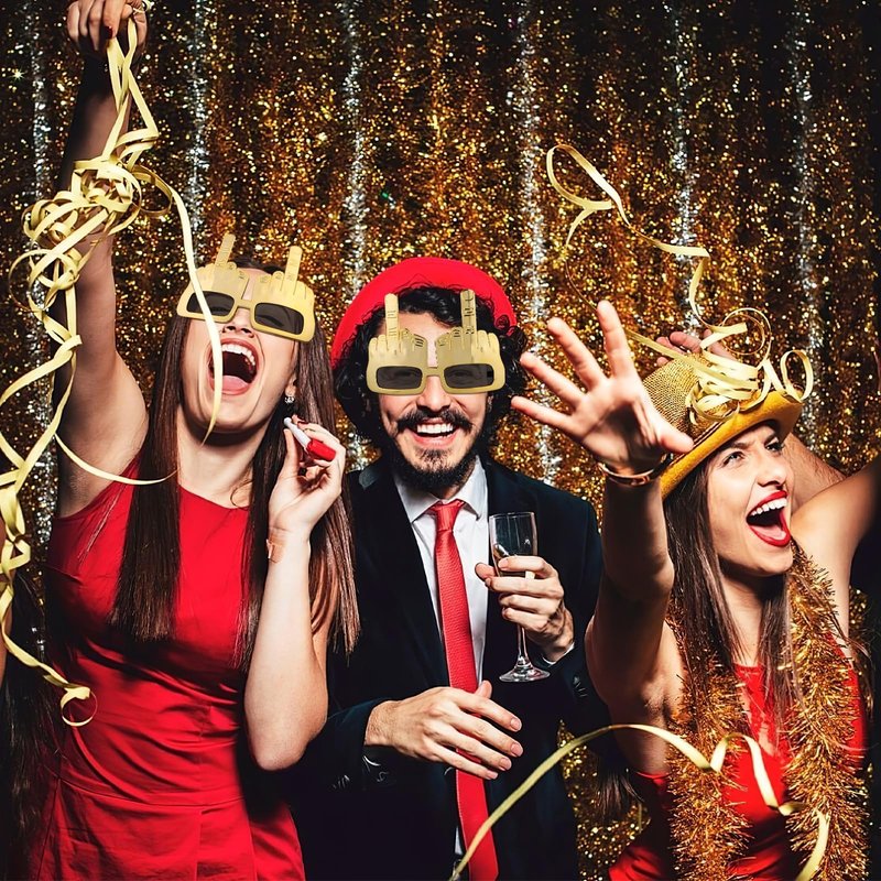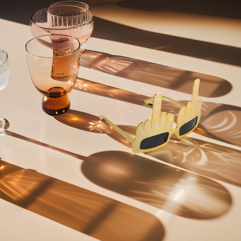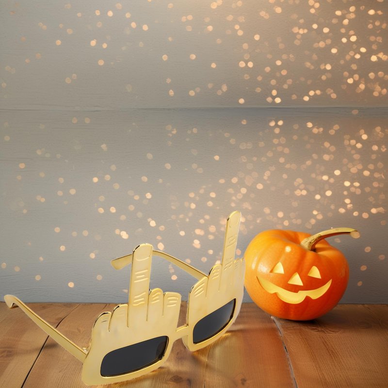 - These golden middle finger sunglasses are a fun and cheeky accessory for parties, Halloween, or cosplay events. and can also be easy to match with all kinds of costumes, which will make you cool and more charming. It has a wide range of uses and can be used for taking pictures, parties, photo booth props, etc
