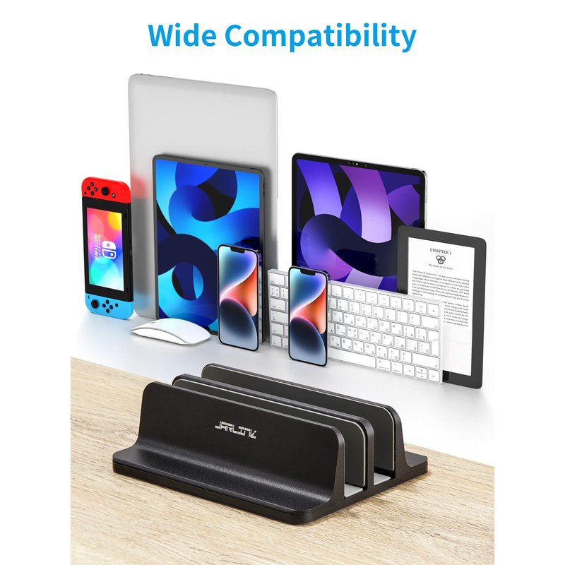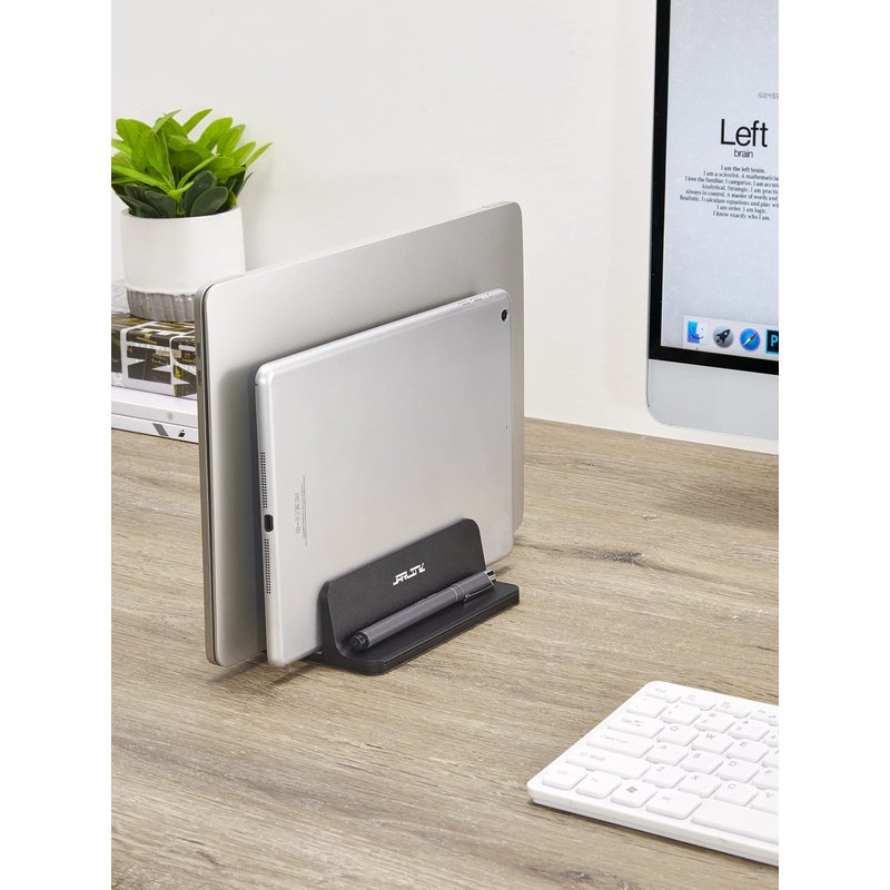 JARLINK Vertical Laptop Stand Holder, Aluminum Double Desktop Stand Holder with Adjustable Dock (Up to 17.3 inch), Fits All MacBook, Surface, Chromebook, and Gaming Laptops, Black