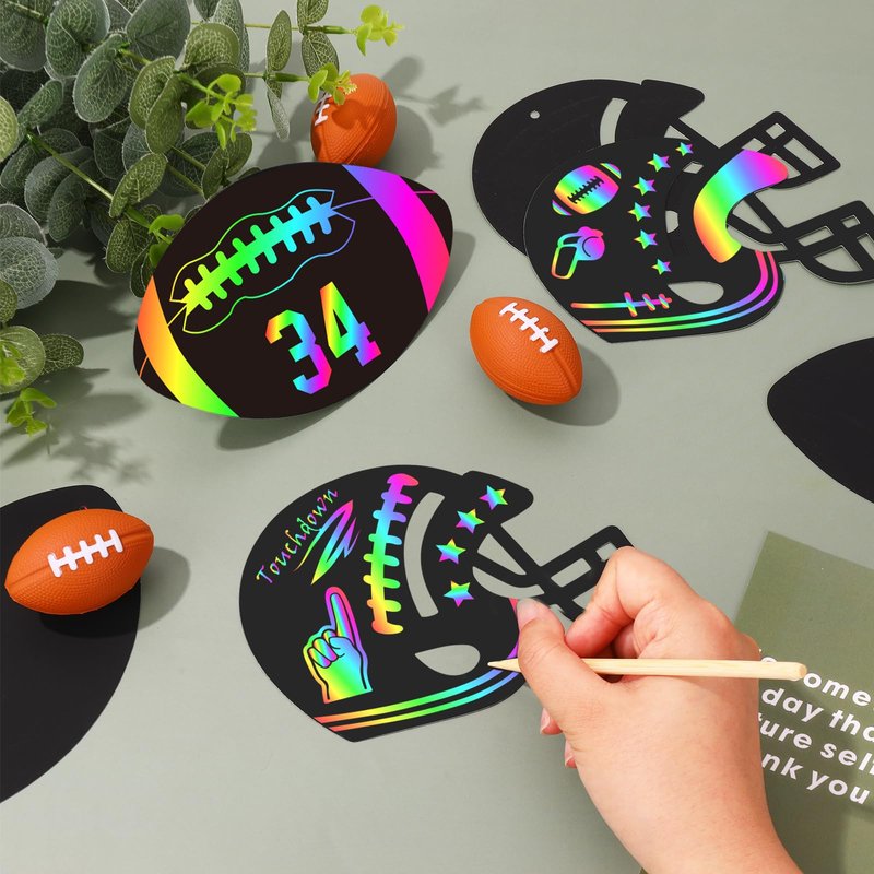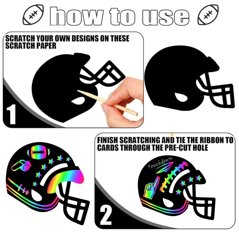 - DELICATE DESIGN: Our scratch art paper featuring football theme, designed with the shape of football and football helmet, delicate and attractive, will nicely increase the fun and pleasant atmosphere.