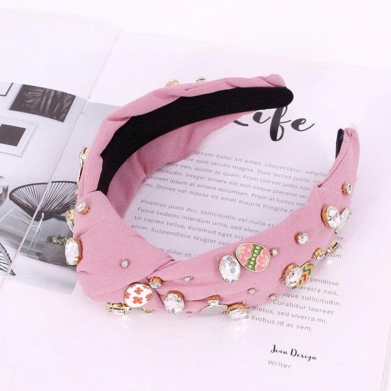 jascaela Women’s Pearl Knotted Rhinestones Headband Vintage Face Wash Headband Jewelry Going Out Non-slip Headband Pink Pearl