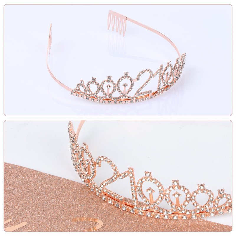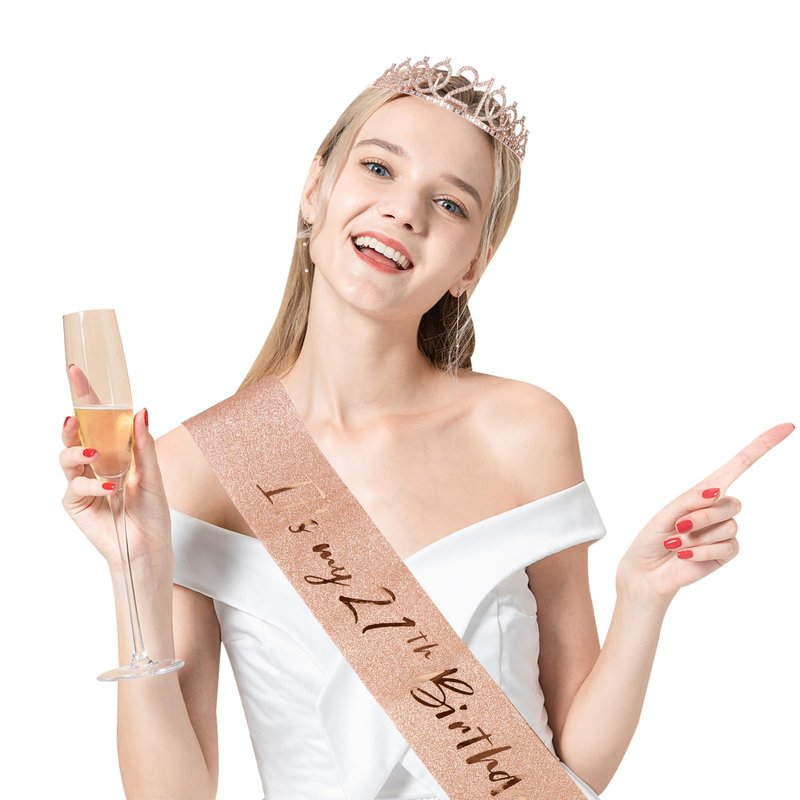 JasperKino 21th Birthday Sash and Tiara Set Rose Gold Birthday Sash Crown Birthday Party Favors Supplies for Girls Birthday Party