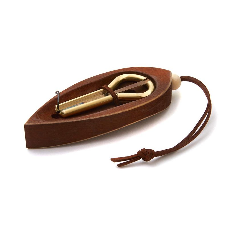 ✔ One harp in a small protective cedar musical case with a leather cord attached
