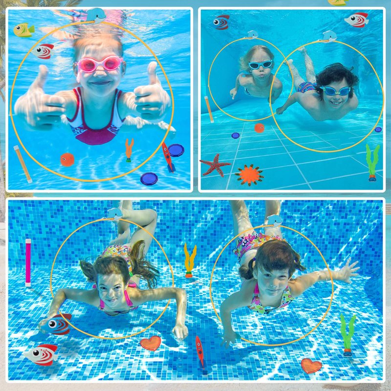- 【Skill-Building Fun】: Enhance diving skills with our dynamic set. It's designed to encourage kids to swim and dive, improving confidence and creativity as they hunt for underwater treasures. Perfect for skill development and creative play.