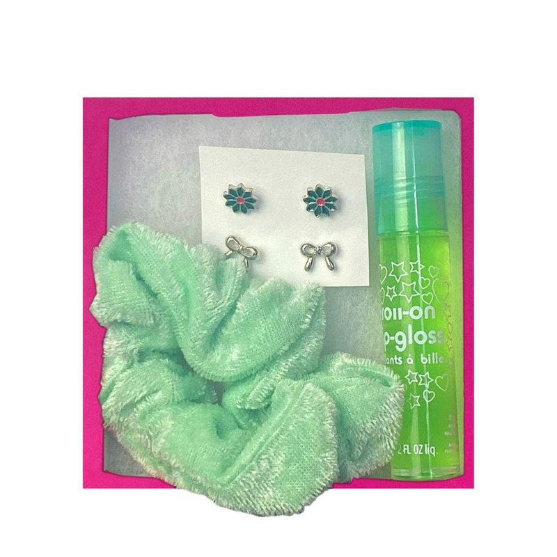 - These are gorgeous. They have lip gloss, hair scrunchie and earrings in each one. Unique surprises in hot pink packaging.