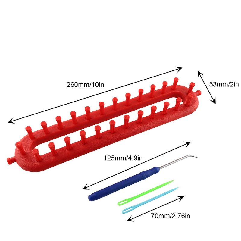 JCBIZ Rectangle Knitting Looms Plastic Weaving Looms Set Scarf Hats DIY Crocheting Handmade Craft Kit with a Crochet Hook and Needle for Knitting Lovers, 26 cm (Red)
