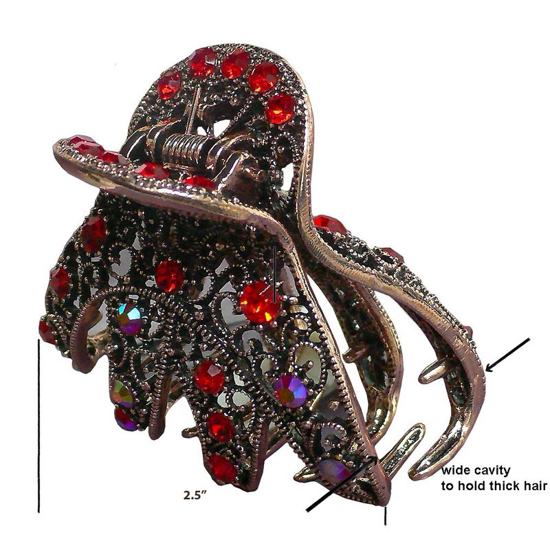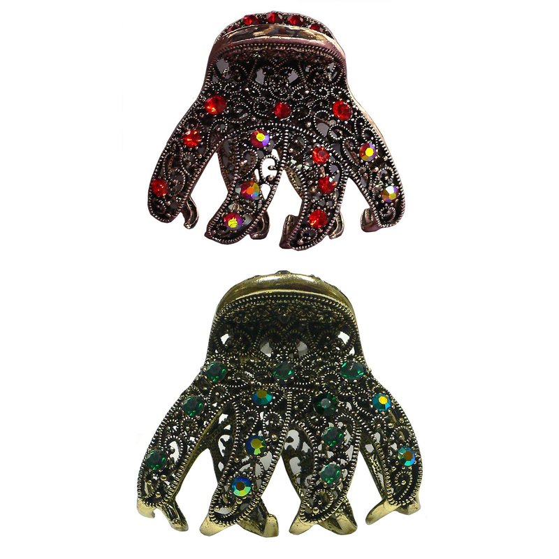 JCGY Set of 2 Crystal Jaw Clips Metal Claws Antique Bronze Antique Gold Trim YY86410-2RedEmerald