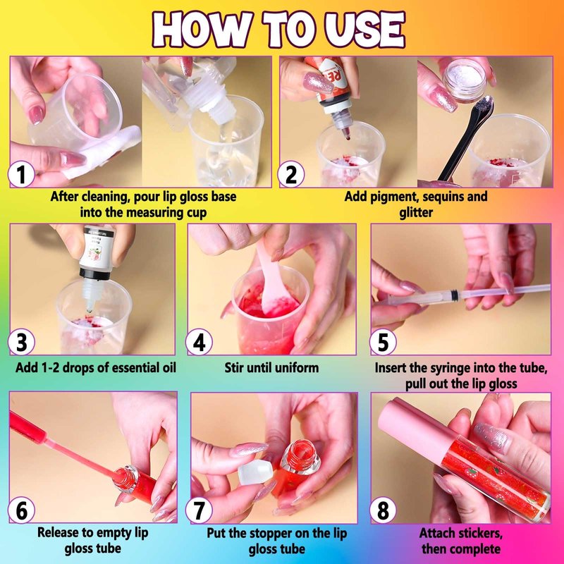 - NATURAL & HYDRATING LIP GLOSS: Feel the smoothness and delightful fragrance of rose and lavender oil to keep your lips moisturized all day. The lip gloss base clear makes lip gloss glossy, easy to mix and simple to apply, ensuring safety for your kids. Detailed instructions are included to help easily make kids lipgloss