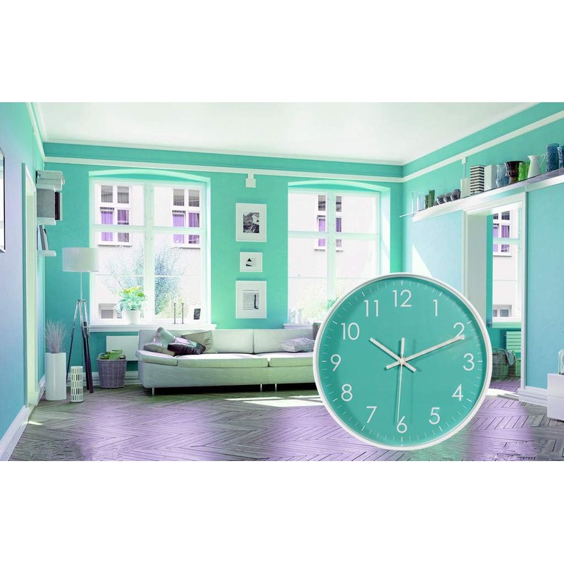 Decorative Wall Clock with Modern Style: Modern style makes wall clock perfect wall decor for School, kitchen, bedroom or any room decoration. Easy to rest: No noise when the pointer moves, Quartz Movement makes no ticking sound, which ensures you a good sleeping or working environment. Easy to Read : Big Arabic numerals against bright PVC face make clarity and easy viewing, the front glass cover guarantees crystal - clear view. Easy To Hang : Come with 1 hook included. Back nail slot make the installation is easily. How To Use: 1.Please fix the hook on the wall before hanging the clock. 2.Insert one AA Carbon Battery and set time. 3.The back slot hangs on the hook. Specifications: 1. 100% Brand New. 2. Color: Rose gold frame/ White dial. 3. Material Type: Plastic. 4. Pointer Material: Metal. 5. Pointer Color: Teal. 6. Movement: Quartz ( Battery Powered). 7. Diameter: 10-Inch. 8. Style: Simple and modern style. 9. Numeric Types: Arabic Numeral. 10. Display: Analog. 11. Shape: Round. 12. Item Type: Wall Clock. Package Included: 1* Wall Clock (Battery Not Included) 1*Hook