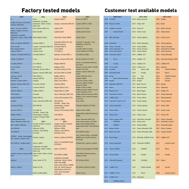 - 【WIDE VEHICLE COVERAGE】Works on most Vehicles (Chevy / Buick / Opel / Cadillac etc., from 2006-2022, Cars, SUV, Pickup) equipped with 315 or 433 MHz Tire Pressure Monitor system (TPMS) sensor.