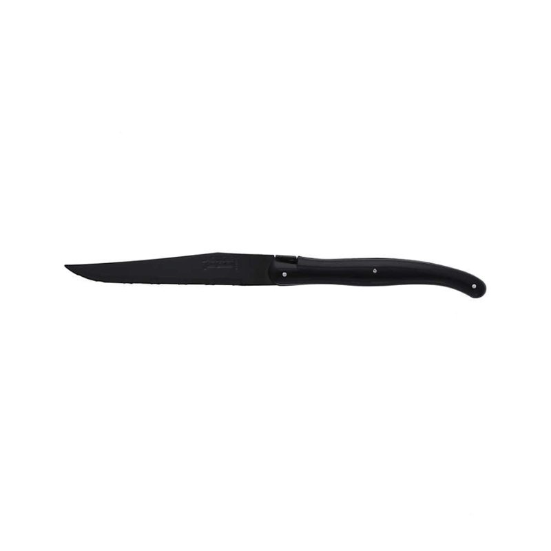 - Contemporary and sleek, these Jean Dubost Steak Knives demand attention wherever they are placed. The blades are coated with titanium, zirconium, and chromium, providing each blade with the sleek black coloring. The blades are serrated and have a thickness of 1.2mm.