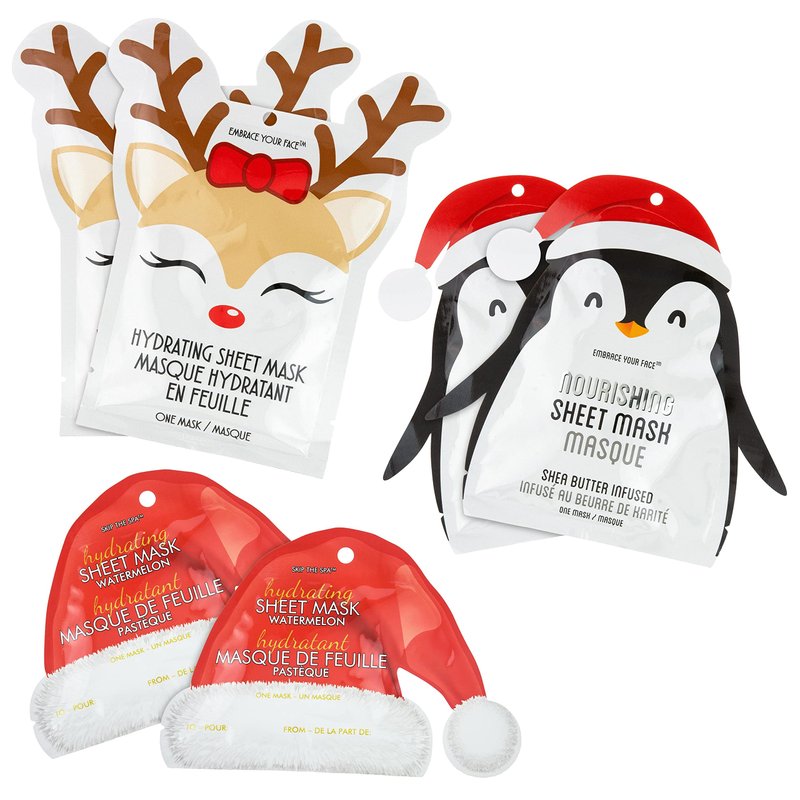 Jean Pierre Christmas Face Mask Skin Care, Sheet Masks, 2 Deer Hydrating Masks + 2 Penguin Nourishing Masks + 2 Santa Hat Hydrating Mask