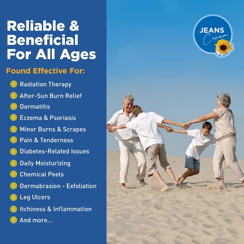 - Supports Skin Repair and Regeneration - Jeans radiation cream helps in the natural healing process for burns from radiation therapy, cosmetic procedures, and other skin troubles. Its plant extract-enriched formula promotes sunburn relief, skin repair, and regeneration, gradually blurring the signs of treatment on your skin.