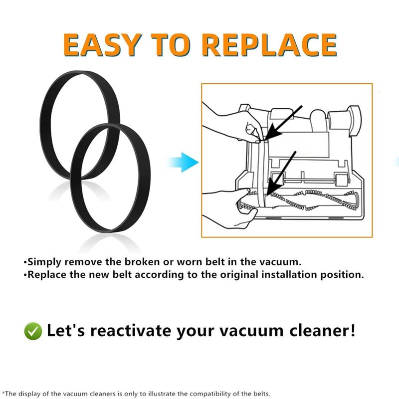 - Easy to Replace - Simply remove the damaged belt from your vacuum head and replace this new drive belt in the original position, bring your vacuum cleaner back to life!