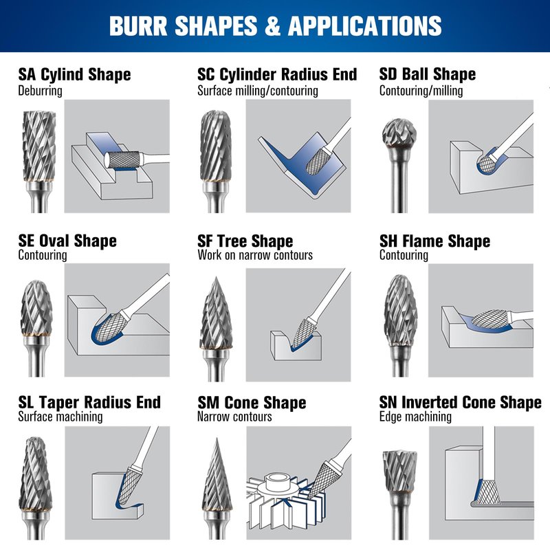 - ✔️【HIGH QUALITY 】Tungsten carbide burr bits are made of high quality heat- treated tungsten carbide whose hardness can reach to HRC70 with long service life and lasting durability.