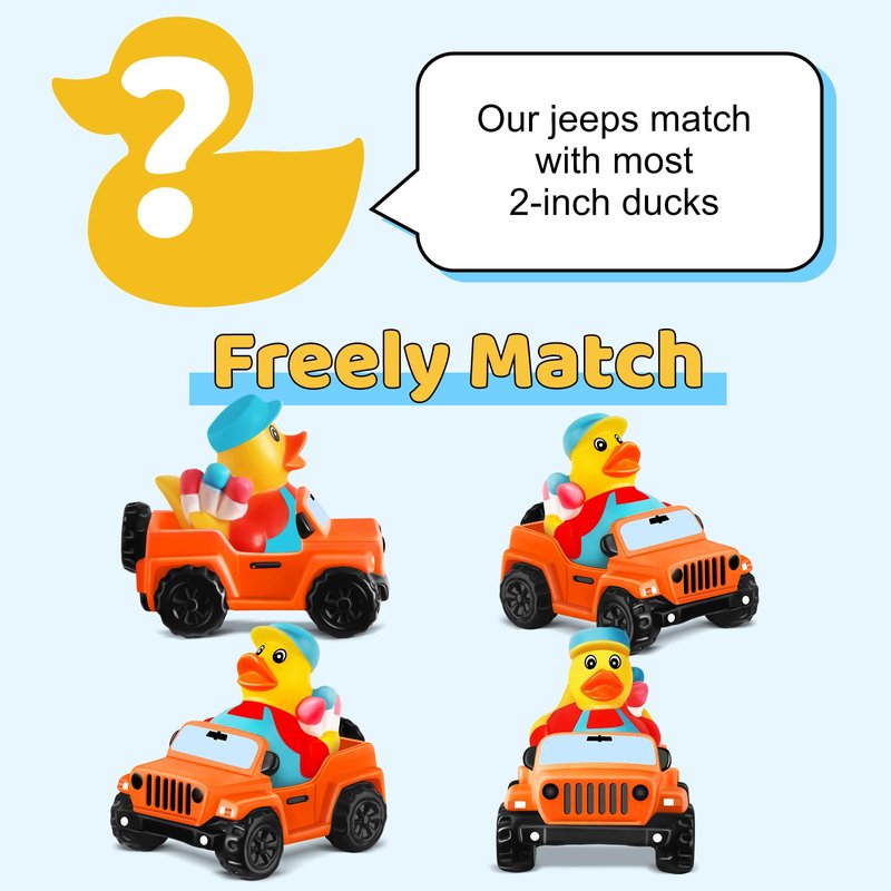 - Upgraded DIY Jeep for duck: The size of upgraded jeep for rubber duck is 3.5x2.5x1.7 inch, which is larger than other jeep, so you can match assorted 2 inch ducks for these jeep, whether you are an jeep ducks enthusiast or just entering jeep duck cultural circle, join the jeep duck trend