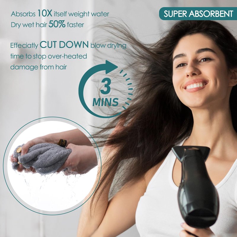 - ✨SUPER ABSORBENT & LIGHTWEIGHT MICROFIBER HAIR TOWEL WRAP-The twist hair towel turban soaks up more than 70-80% water in 3 minutes from your wet hair,then dry very quickly once removed from your head, especially works well for thick and long hair