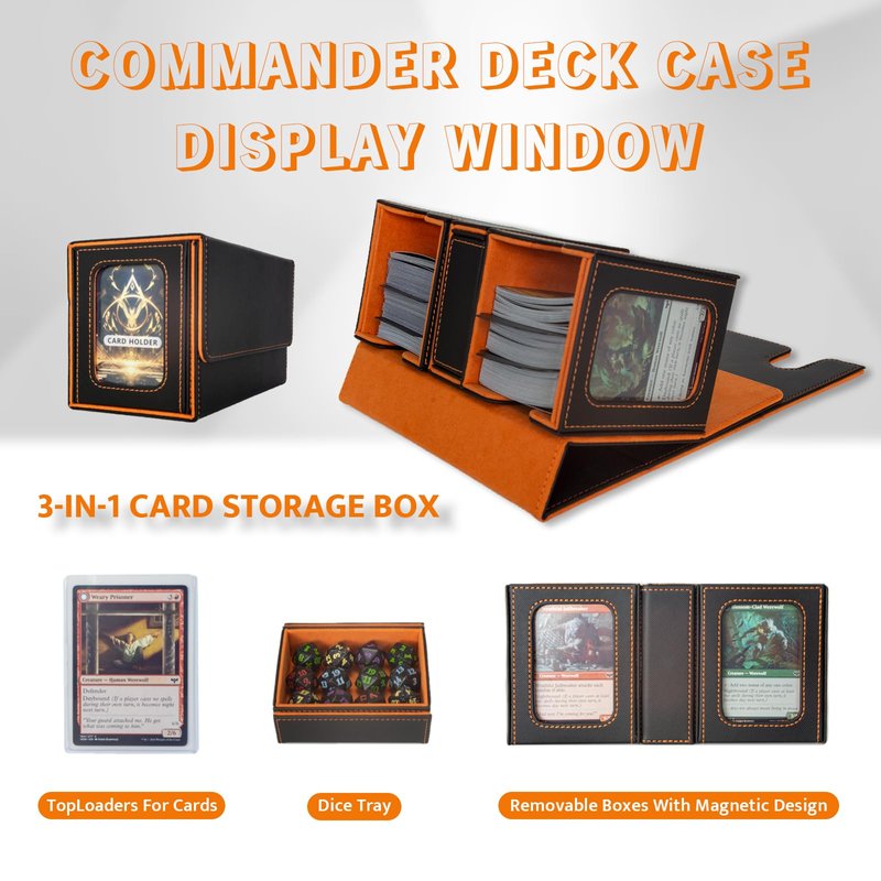 - Commander EDH Enthusiasts: Tailored for Commander EDH players, our MTG Commander Card Storage Box holds 80 double-sleeved cards per box. The side window allows for quick identification of your commander or avatar card