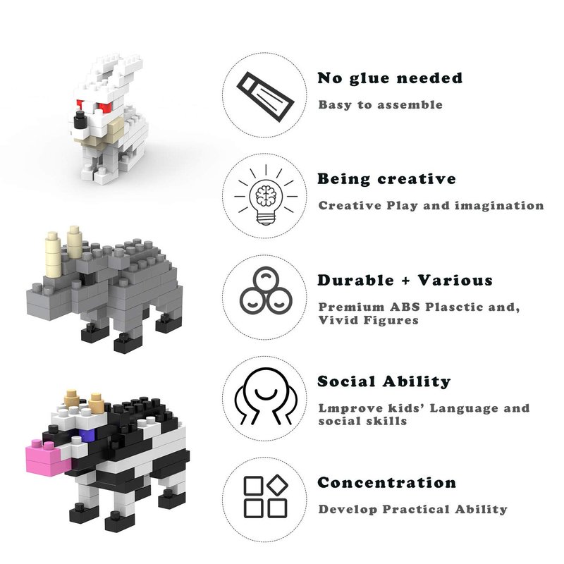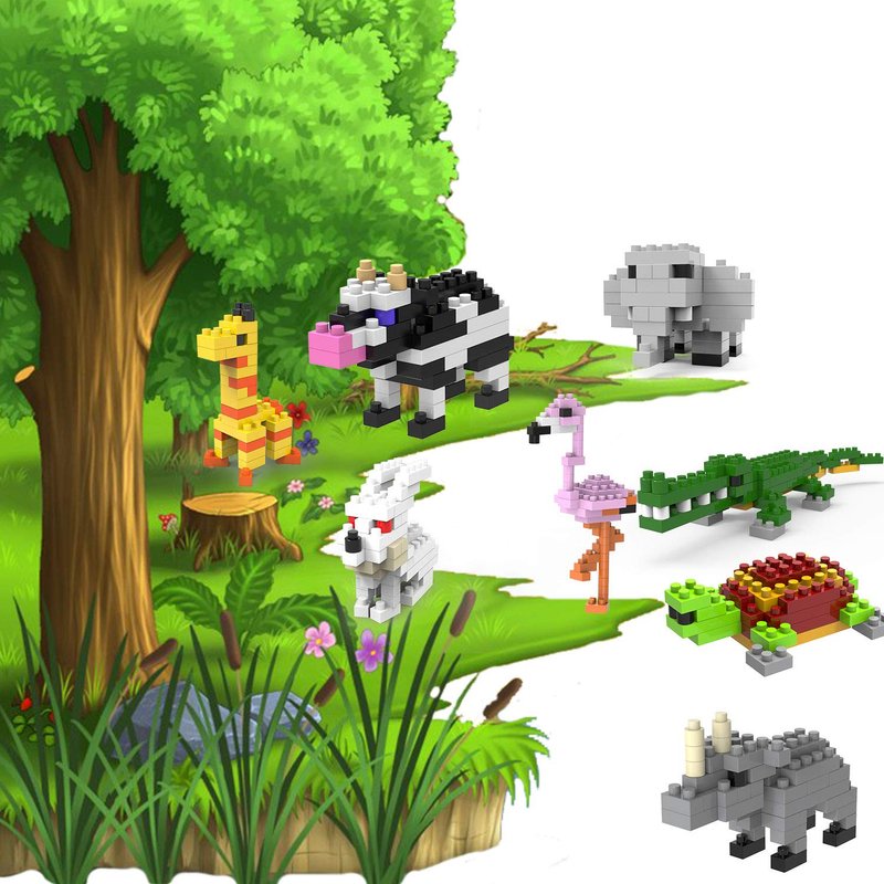 - ❤ 12 in 1 Building Animals Set- This item include 12 animals mini blocks pack ,Cow, flamingo, giraffe, orangutan, rhino, dog, parrot, crocodile, sheep, turtle, elephant, rabbit,each around 50 pieces set, your kids can learn different animals by set up by themself. suitable for kids ages 3 +.