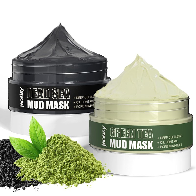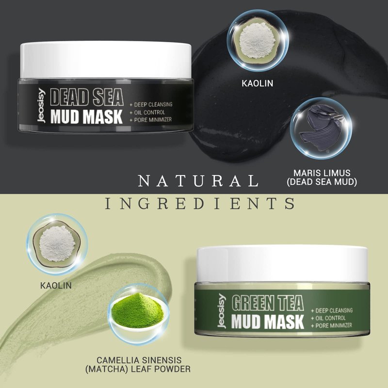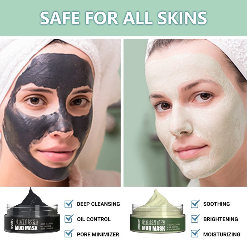 jeosisy Face Clay Mask-Facial Dead Sea Mud Mask,Green Tea Mud Mask,Purifying Pore,Remove Blackheads,Control Oil,Anti Aging,Travel Size Mother's Day Gift Sets for Women and Men-2.8Oz*2