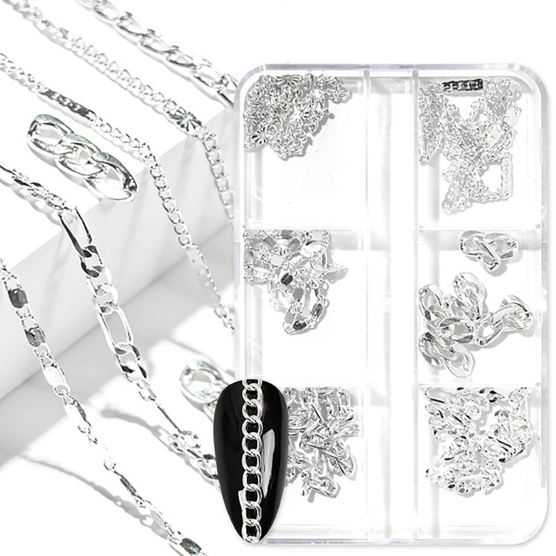JERCLITY 1 Box 6 Strips Nail Chains for Nail Art Silver Alloy Metal Nail Art Chains Silver Nail Charms Punk Chains Nail Studs Silver Chain Accessories for Women Nail Art