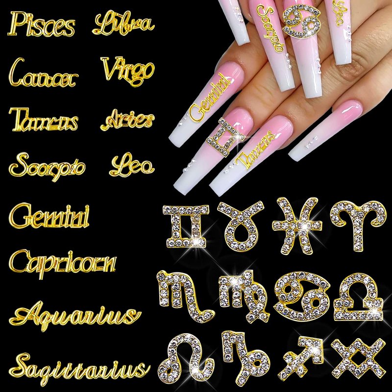 - Color: 24 Pieces Gold Zodiac Nail Charms