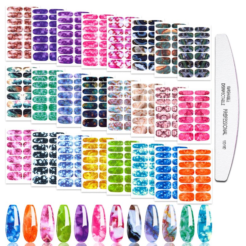 • πŸγ€PACKAGE CONTENTSγ€‘οΌšcomes with 24 sheets candy gradient marble full nail stickers in different patterns and sizes, each sheet contains 14 pieces, totally 336 pieces, sufficient to meet your DIY nail art decoration needs, comes with 1 piece moon shape nail file, can bring much convenience to the DIY process.