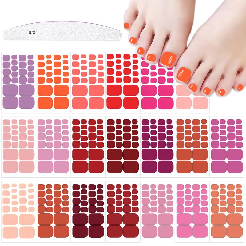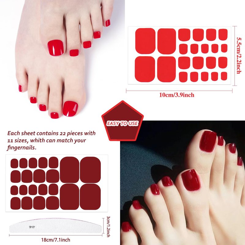 - 【Package Contents】:20 sheets pink red color self-adhesive toe nail wraps + 1pc moon shape nail file. 22 pieces for each sheet, 440 pieces in total.