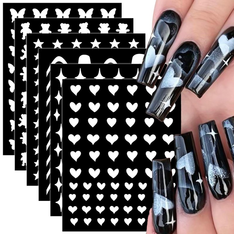 - ⭐💕🦋【Package Contents】 Come with 6 sheets airbrush nail stencils stickers with different patterns, such as heart butterfly star french tip. A large number of different patterns for you to use and change in your daily life, and various patterns bring you a different mood.