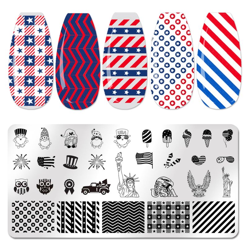 - 🇺🇸【Independence Day Patterns Design】:Each template contains various kinds of patterns, such as American flag, stars, heart, map, USA, letter, eagle, gnome, statue of liberty, etc, sufficient quantity and patterns can satisfy your various needs, will make your nail more attractive.