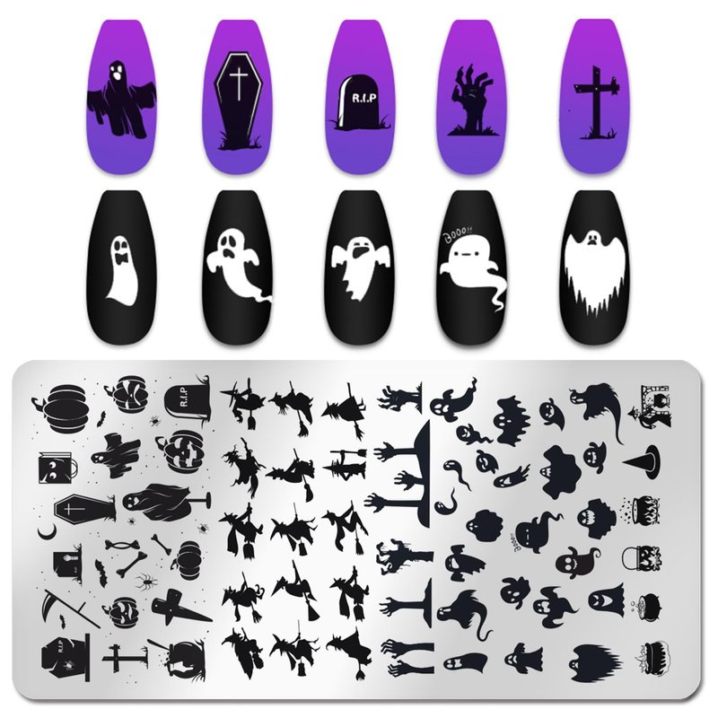- 【Halloween Patterns】:Each template contains various kinds of patterns, such as cobwebs, witch, cemetery, owl, ghosts, skull, skeleton, spider, bats, cats, jack-o'-lantern, haunted house, cemetery, tombstone, flame and more, sufficient quantity and patterns can satisfy your various needs, full of festive atmosphere and will make your nail more attractive.