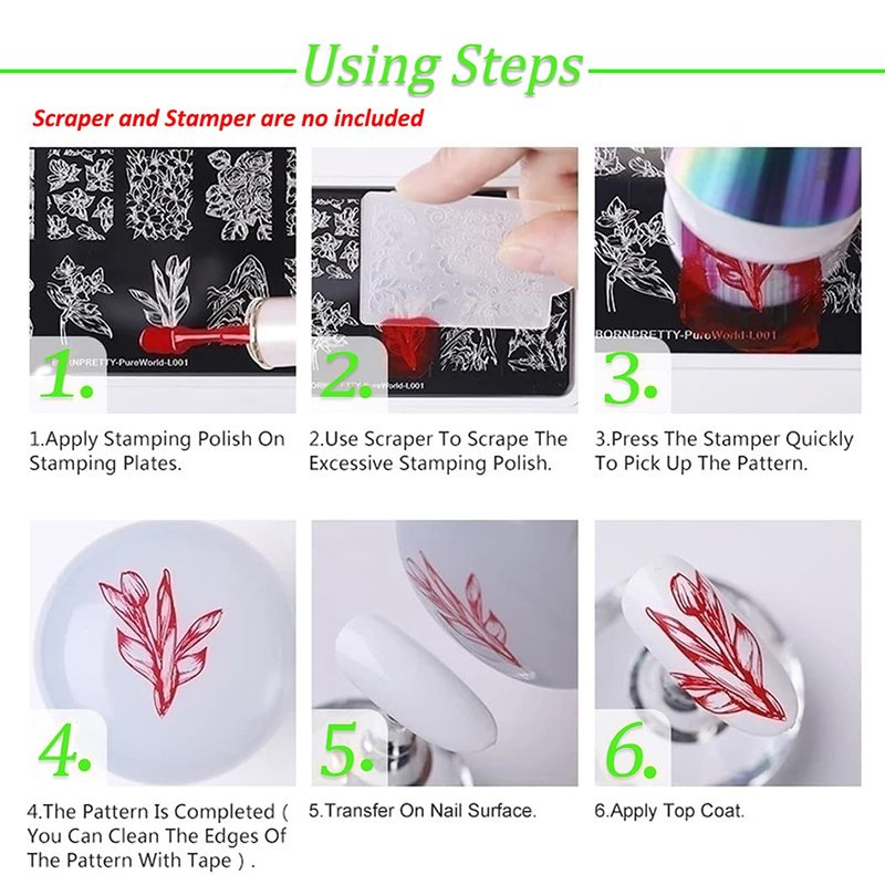 - 【Easy To Use】:Easy to stamp and transfer, each plate has blue protective film which can protect them from scratching, you can use the nail polish and other relative tools to stamp and get the cute patterns.(Warm tips:The scraper and stamper are no included.)