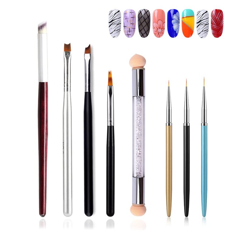 - 💖【PACKAGE CONTENT】-- 8pcs professional nail art brushes, 3pcs alloy handle nail art liner brushes, 1pcs red wooden handle nail gradient painting brush, 1pcs silver handle half moon shape french nail tips ombre nail brush, 1pcs black handle nail art oblique head french brush, 1pcs black handle lace nail ombre brush gradient painting pen,1pcs of dual nail art sponge brush with round and sharp tips.