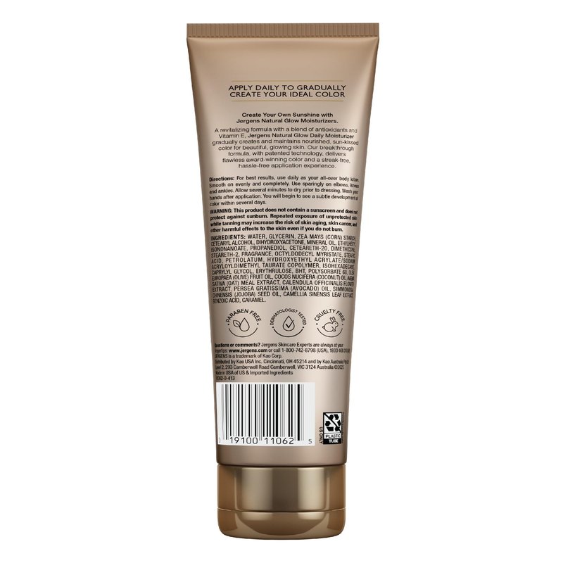 - GRADUAL TANNING LOTION - Our Jergens Natural Glow Daily Moisturizer will gradually enhance and deepen your natural skin tone to provide hassle-free, streak-free color.