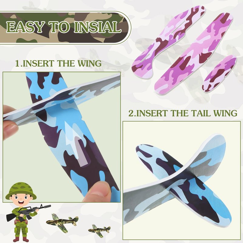 - Camouflage Combination: the package contains 10 pieces of camouflage foam airplanes and 10 pieces of parachute toys, 20 pieces in total, sufficient quantity and nice combination can nicely satisfy your playing needs