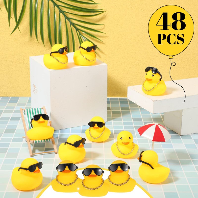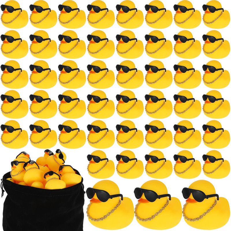 Jerify 48 Pcs Bulk Sunglasses Rubber Duck with Sunglasses, Gold Chain Rubber Duck Baby Shower Floating Bathtub Toys Birthday Party Favors Carnival Gifts Decorative Gifts